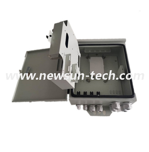 Fiber optic wall box system can be supplied unloaded ready for the installer to load with their choice of adapters, or pre-loaded with adapters ready for installation. With the ability to use a full array of adapter types, this wall box offers a flexible solution to the end user, enabling them to incorporate a multifunctional wall mounted box which allows easy access during installation or rework with no disturbance of existing cable or fibers. In addition to the array of adapters, the box also offers multiple cable entry and exit solutions: up to 4 standard entry points for 6mm~25mm cable and 4 cable glands position for drop cable,patch cord exit.