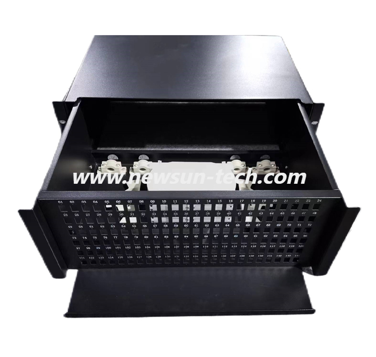 NSTB-S144F Slidable Rack-mount Fiber Optic Distribution box is a kind of fiber optic management product has steel sliding fittings with self-locking functions prevent the drawer from falling when moved.