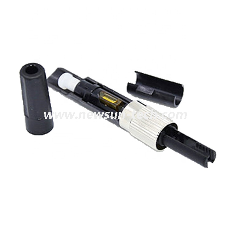 The FC/UPC and FC/APC fast connector are factory pre-polished, field-installable connectors that completely eliminate the need for hand polishing in the field. Proven mechanical splice technology ensuring precision fiber alignment, a factory pre-cleaved fiber stub and a proprietary index-matching gel combine to offer an immediate low loss termination to either single-mode or multimode optical fibers.
