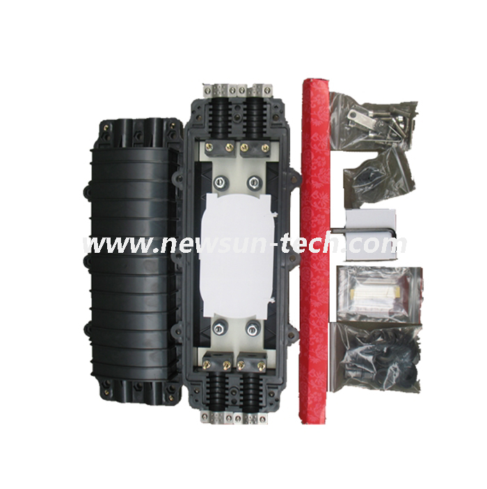 Fiber optic closure is vertical with 2 inlet and 2 outle.The outer shell is made of enhanced ABS engineering plastic, it’s strong and light, can efficaciously prevent the lighting strike, erosion, aging and fire resist, the tray is pulldown, so it’s easy installation, don’t need dismantle other tray, the material of the sealing is silica gel,it can be placed in underground, aerial, wall-mounting, pedestal or direct buried, hand hole-mounting and duct-mounting applications. fiber closures can improve the operation of your network communication system.Closure is suitable for the applications up to 96 single fibers,which can cover most of the applications in the long-distance transmission and local fiber distribution networks, like Fiber To The Home / Fiber To The Curb ...(FTTH/FTTC).