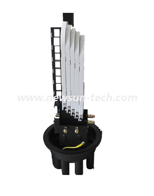 The cable jacket(sheath) stops at the splice enclosure’s cable ties. Optical fiber tubes, individual tight buffered fibers, or pigtails are supported by the tube brackets and continue to the splicing trays.