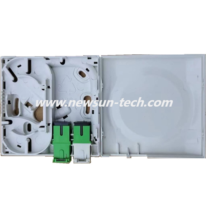 It is used in the home or work area to complete the access and port output of dual-core optical fiber, which can fully meet the requirements of the bending radius of optical fiber, protect the incoming and outgoing optical fiber, and provide safe protection for the fiber core. The product has novel design and beautiful appearance. There is a reserved layer of optical fiber tray inside. The optical fiber fusion layer is clear and easy to operate. It is applicable to FTTH (optical fiber to the home), FTTO (optical fiber to the office), FTTD (optical fiber to the desktop) and other occasions, and adopts the box cover buckle design