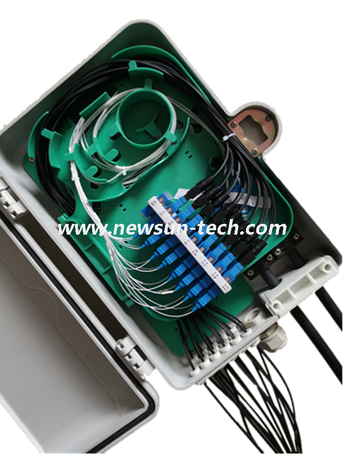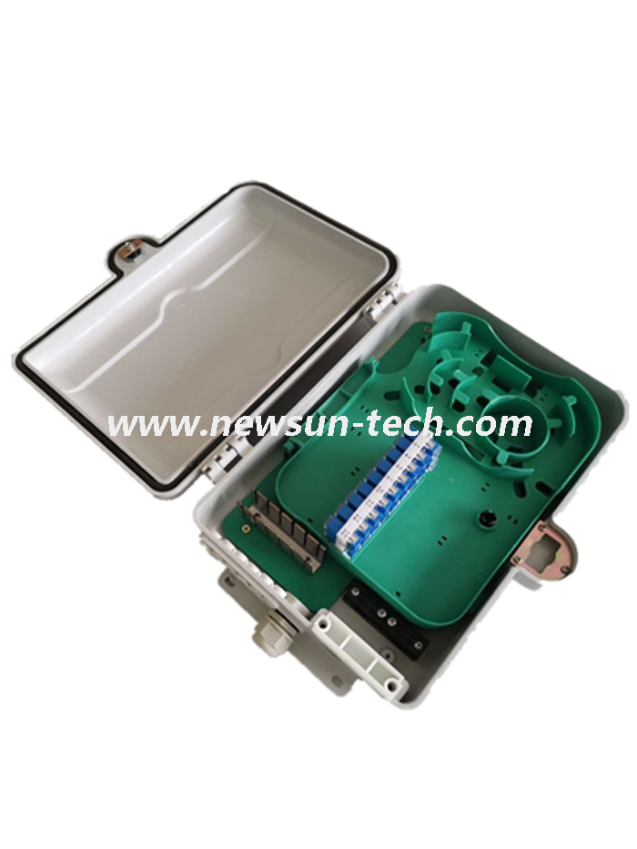 NSM-3616 As an optical access for FTTH, an optical fiber distribution point (FDP) can implement connection and distribution of backbone cables and subscriber cables. It is used in splicing or mechanical splicing and distribution of fibers. These is an 16 ports subscriber optical FDP with compact design. The material for enclosure is SMC/FRP. It provides a protected access point between the distribution cable and drop cable. To simplify network installation and maintenance, FDP box provides an ideal flexible configuration. It supports 3 ports for Distribution Cable side