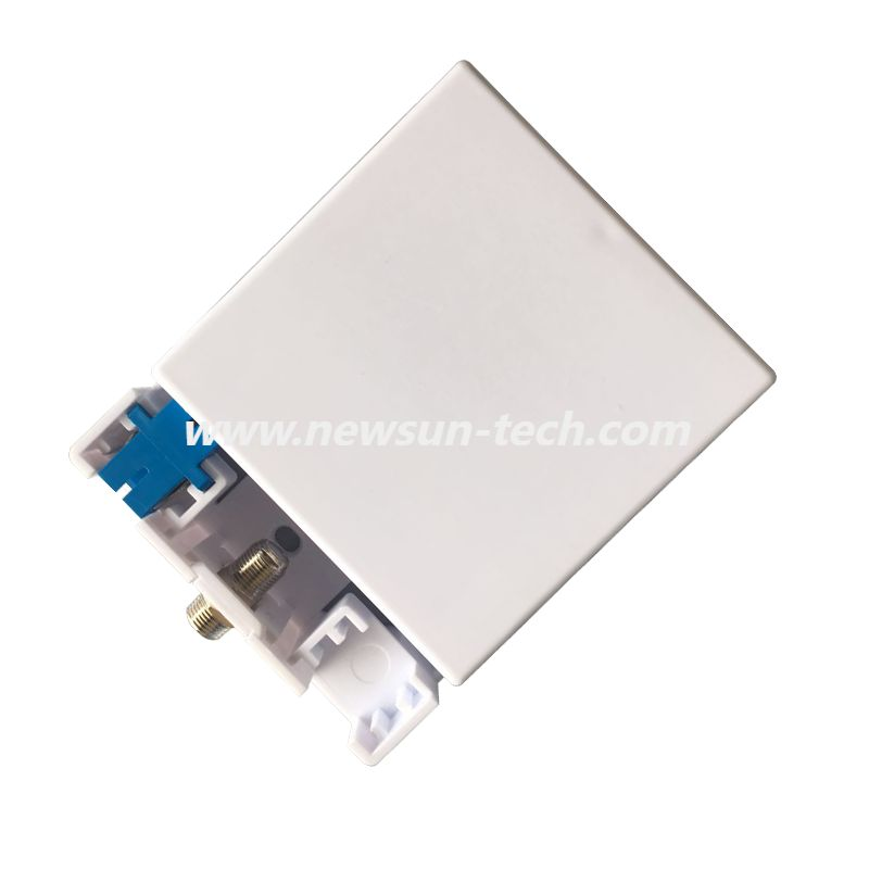 NSTB-EF03 is new three port desktop box which can be used for both fiber optic users and cable TV users simultaneously; The middle interface is installed with a limited television TV module terminal; Install fiber optic flange modules with two interface optical fibers on both sides, ST long ear type; FC Long Ear Type; SC simplex, LC eared duplex, four types of fiber optic flanges for customers to choose from.
