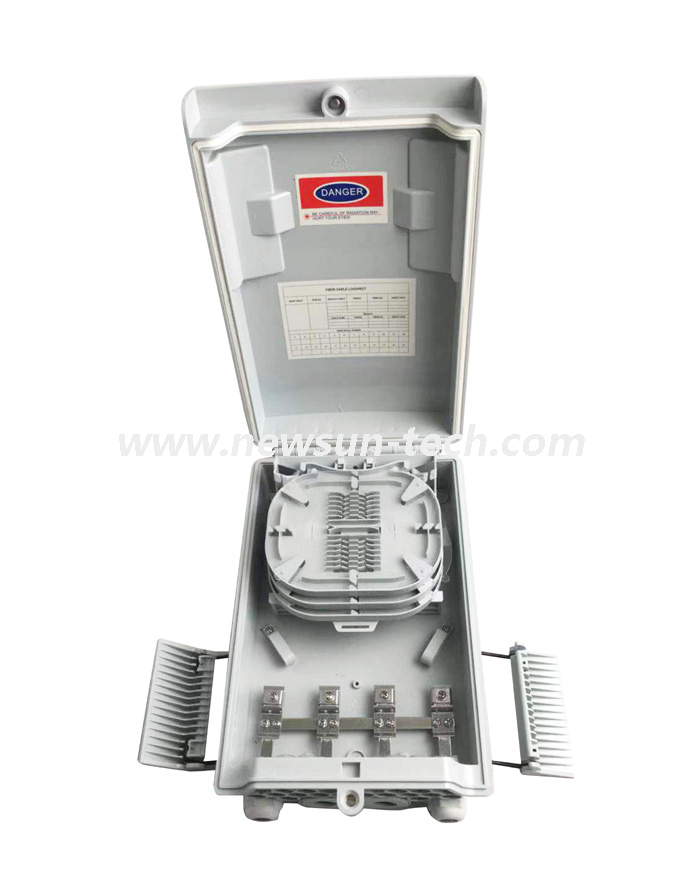 NSTB-FP16A Fiber Optic Splitter Distribution Box is used as a termination point for the feeder cable to connect with drop cable in FTTx communication network system. The fiber splicing, splitting, distribution can be done in this box, and meanwhile it provides solid protection and